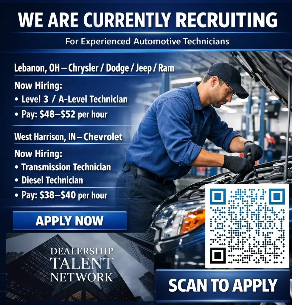 With more than 50 years of combined experience in the automotive industry, Dealership Talent Network is a specialized automotive staffing partner supporting car dealerships and independent repair shops nationwide. Through focused dealership recruiting services, we connect organizations with high-performing automotive technicians and operational talent that drive measurable results.